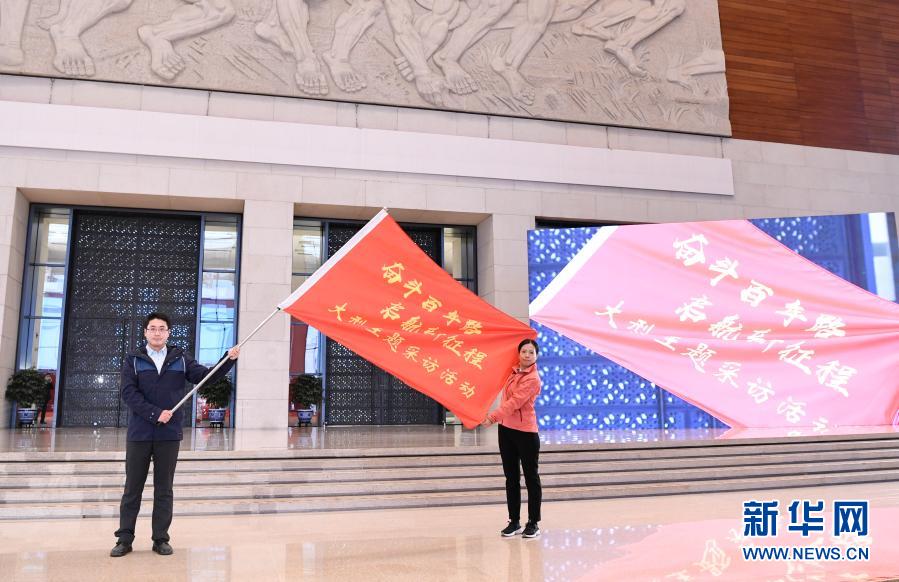 1月18日,在北京國家博物館,記者代表展示“奮斗百年路 啟航新征程”大型主題采訪活動(dòng)旗幟。新華社記者 申宏 攝