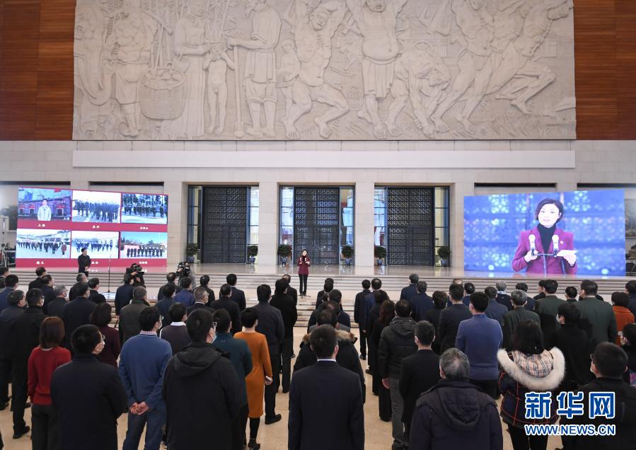 1月18日在北京國家博物館拍攝的“奮斗百年路 啟航新征程”大型主題采訪活動(dòng)啟動(dòng)儀式現(xiàn)場(chǎng)。新華社記者 申宏 攝