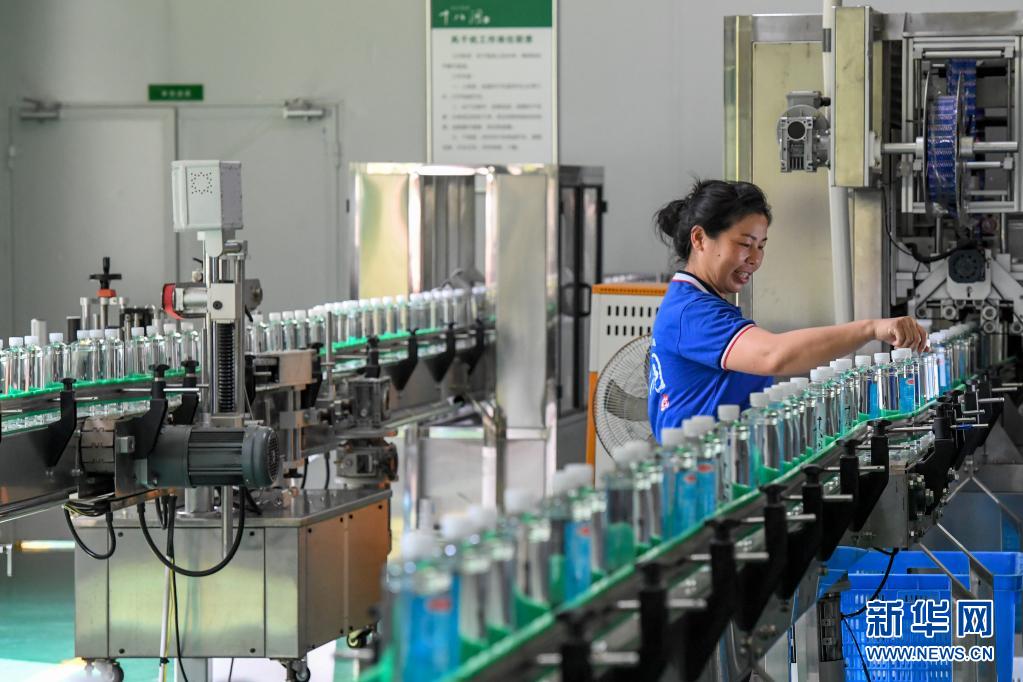 湖南省湘西土家族苗族自治州花垣縣十八洞村村民在十八洞村山泉水廠工作(2019年9月3日攝)。新華社記者 陳澤國 攝