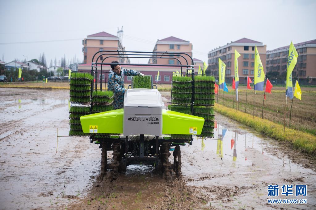 在湖南省益陽市沅江市草尾鎮(zhèn)沅江現(xiàn)代農(nóng)業(yè)技術(shù)研發(fā)基地,工作人員演示插秧機操作(2021年3月2日攝)。新華社記者 陳思汗 攝