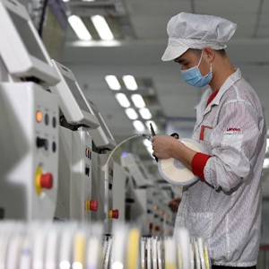 工作人員在聯(lián)寶(合肥)電子科技有限公司生產(chǎn)車間內(nèi)忙碌。(新華社記者周牧攝)