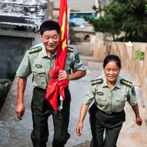 不到一個(gè)月,王仕花辭掉教師工作,把女兒托付給婆婆,帶著包裹,又上島了。從此,他守著島,她守著他,直到王繼才生命的最后一息。32年,一口水窖、三只小狗、四座航標(biāo)燈、數(shù)十棵被吹歪的苦楝樹、200多面升過(guò)的舊國(guó)旗,構(gòu)成他們的守島歲月。