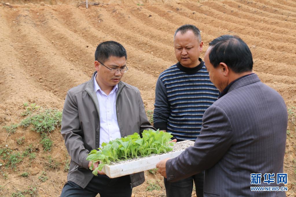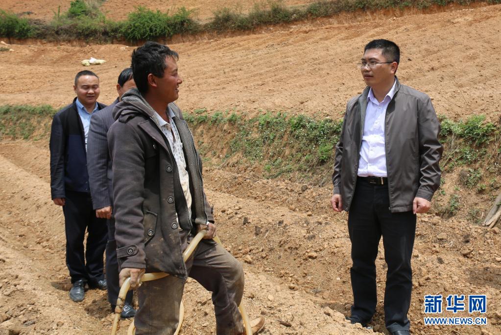 聶金輝(左)在劍川縣彌沙鄉(xiāng)調(diào)研時(shí)了解當(dāng)?shù)禺a(chǎn)業(yè)發(fā)展情況(2016年4月28日攝)。新華社發(fā)(劍川縣融媒體中心供圖)