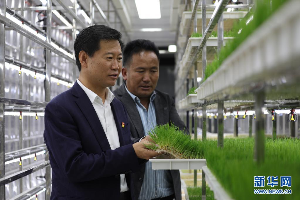 7月6日,張峰(左)在青海省海南藏族自治州恰噶畜牧業(yè)有限公司調(diào)研。新華社記者 趙玉和 攝