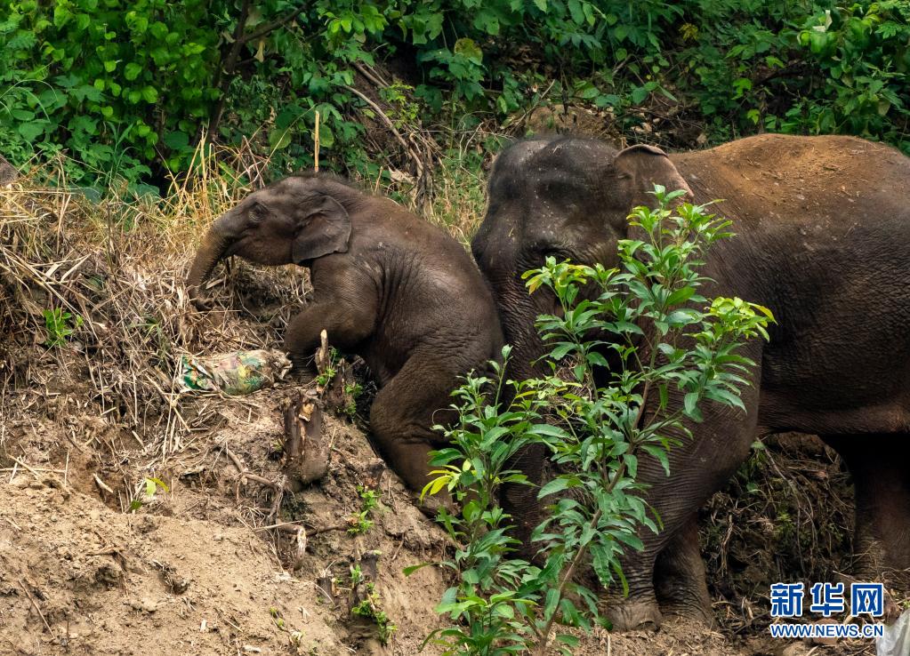 4月24日,有兩頭大象從元江縣自行離群回到普洱市。