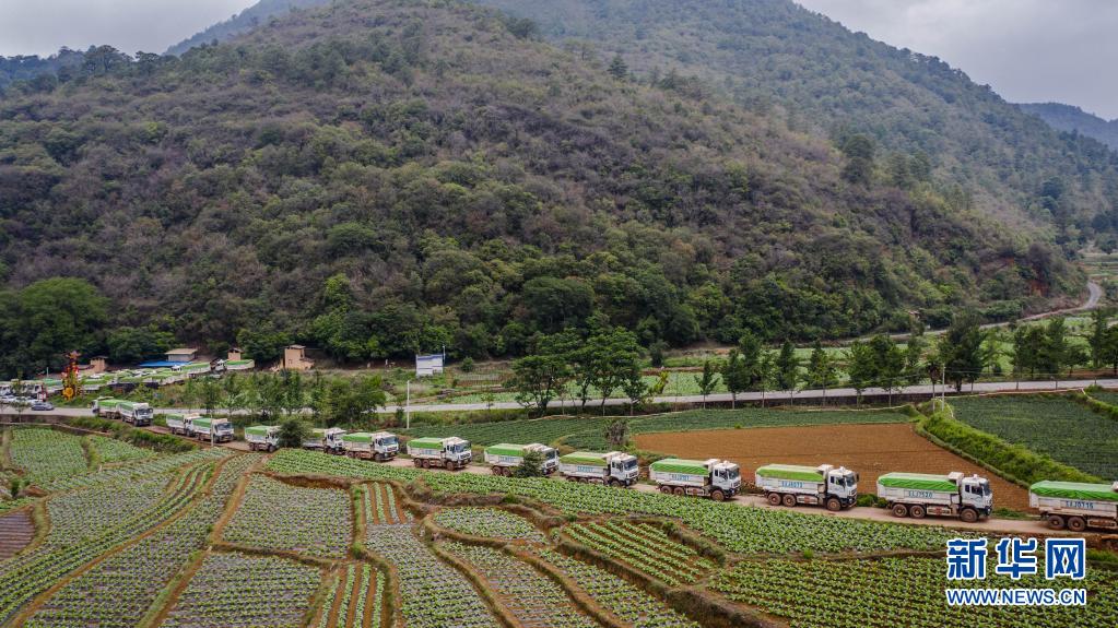 這是6月9日在云南省昆明市晉寧區(qū)夕陽鄉(xiāng)拍攝的負責堵路的渣土車隊。新華社記者 胡超 攝