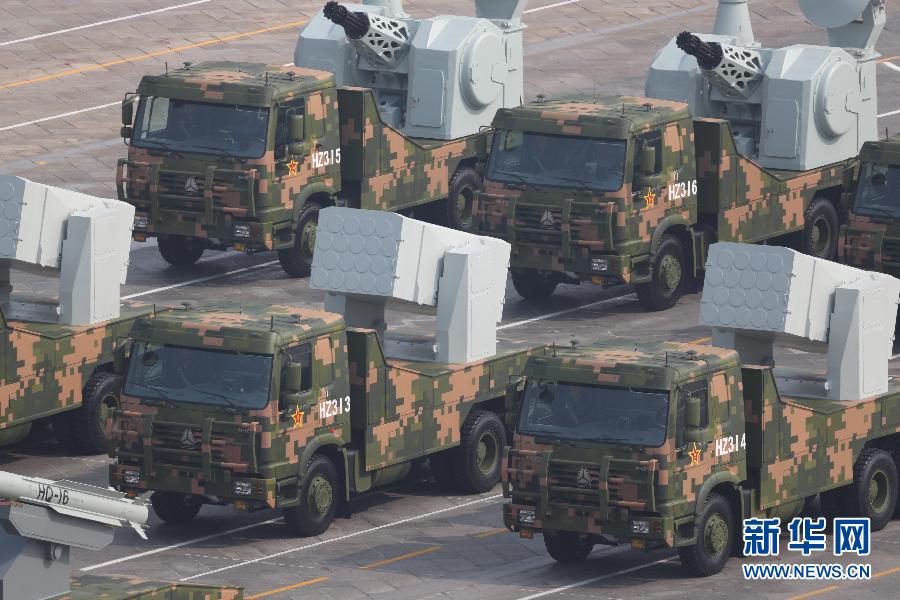 10月1日上午,慶祝中華人民共和國成立70周年大會在北京天安門廣場隆重舉行。這是艦載防空武器方隊。新華社記者 江宏景 攝