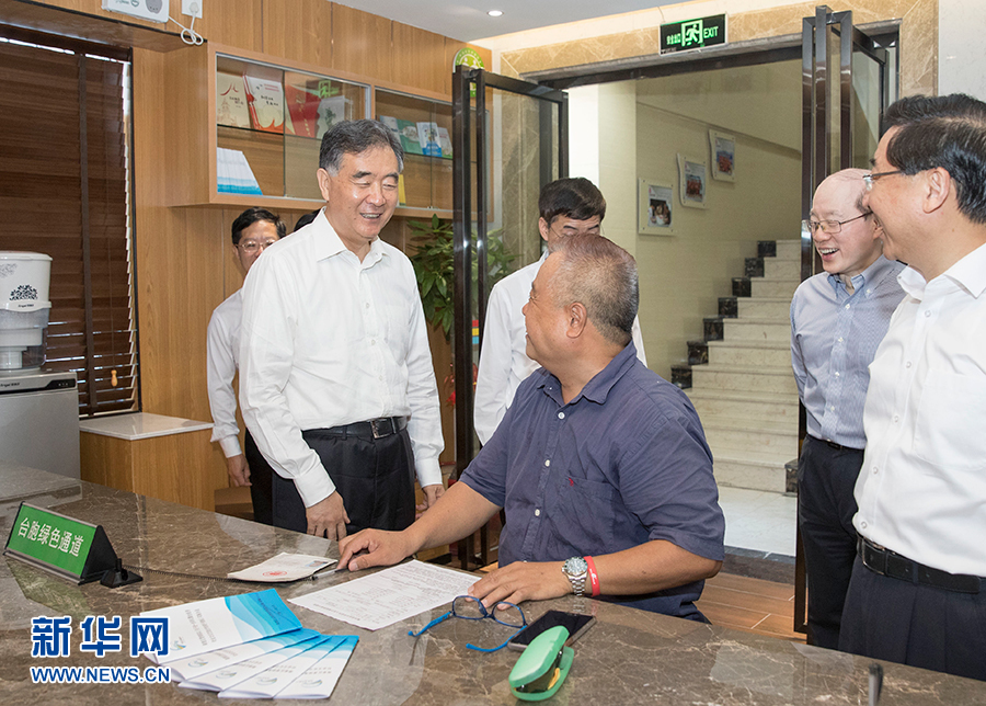6月6日至7日,中共中央政治局常委、全國政協(xié)主席汪洋在廈門出席第十屆海峽論壇期間,就兩岸經(jīng)濟(jì)文化交流合作情況進(jìn)行調(diào)研。這是6月7日,汪洋在廈門市湖里區(qū)殿前街道興隆社區(qū)便民服務(wù)大廳了解臺(tái)胞在閩生活工作情況。新華社記者 王曄 攝