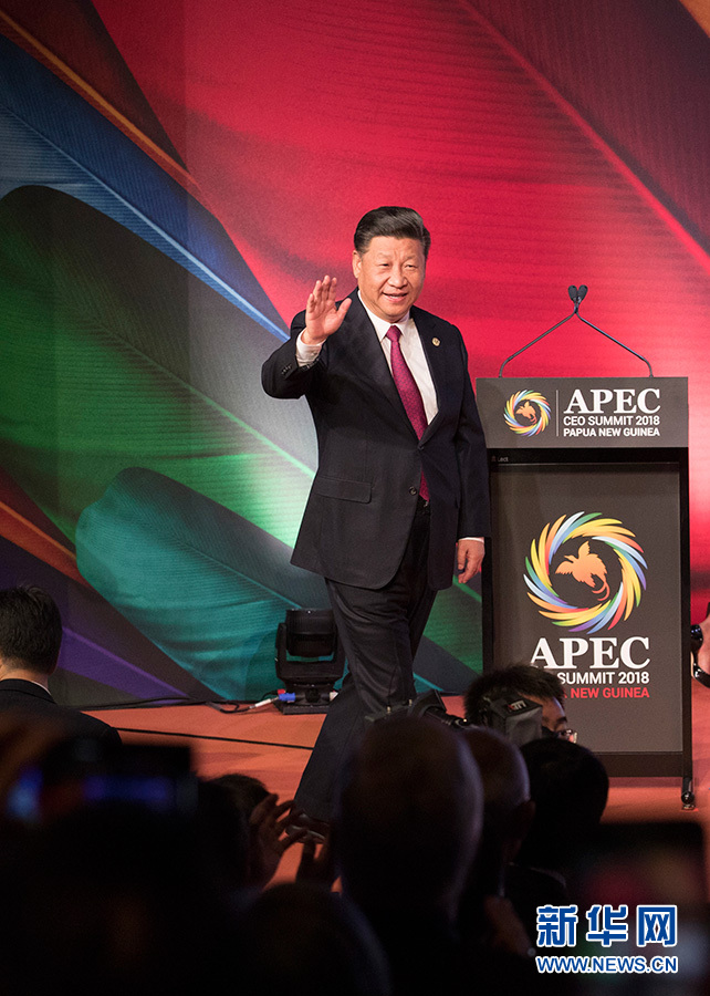 11月17日,國(guó)家主席習(xí)近平應(yīng)邀出席在巴布亞新幾內(nèi)亞莫爾茲比港舉行的亞太經(jīng)合組織工商領(lǐng)導(dǎo)人峰會(huì)并發(fā)表題為《同舟共濟(jì)創(chuàng)造美好未來(lái)》的主旨演講。這是習(xí)近平步入會(huì)場(chǎng)。 新華社記者 黃敬文 攝