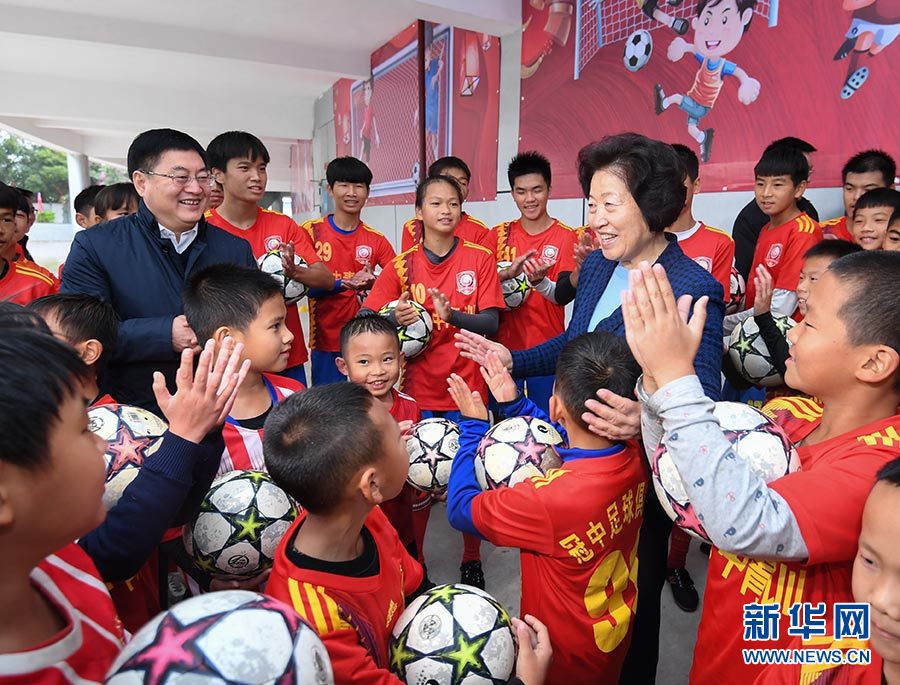12月11日,中共中央政治局委員、國(guó)務(wù)院副總理、中央代表團(tuán)副團(tuán)長(zhǎng)孫春蘭率中央代表團(tuán)二分團(tuán),帶著以習(xí)近平同志為核心的黨中央的親切關(guān)懷和全國(guó)人民的美好祝福,赴防城港看望慰問各族各界干部群眾,共同慶祝廣西壯族自治區(qū)成立60周年。這是孫春蘭在東興市足球訓(xùn)練基地與青少年足球運(yùn)動(dòng)員交流。 新華社記者 申宏 攝