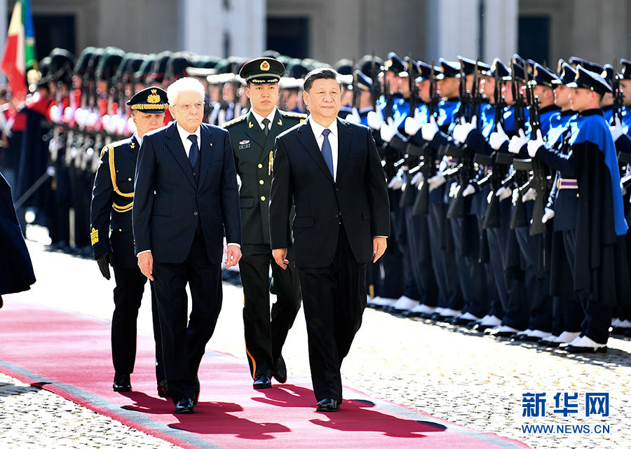 3月22日,國家主席習(xí)近平在羅馬同意大利總統(tǒng)馬塔雷拉舉行會(huì)談。會(huì)談前,馬塔雷拉總統(tǒng)為習(xí)近平舉行隆重歡迎儀式。 新華社記者 謝環(huán)馳 攝