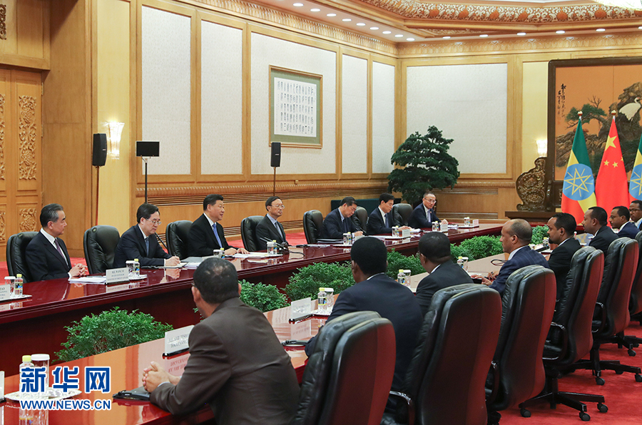4月24日,國(guó)家主席習(xí)近平在北京人民大會(huì)堂會(huì)見(jiàn)埃塞俄比亞總理阿比。 新華社記者 丁林 攝