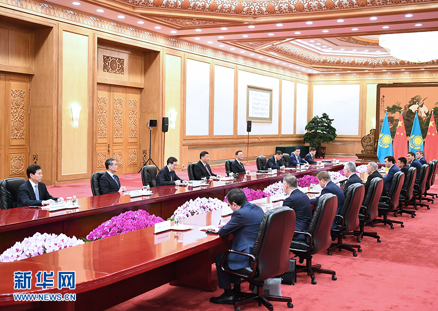 4月28日,國(guó)家主席習(xí)近平在北京人民大會(huì)堂會(huì)見(jiàn)哈薩克斯坦首任總統(tǒng)納扎爾巴耶夫。 新華社記者 謝環(huán)馳 攝