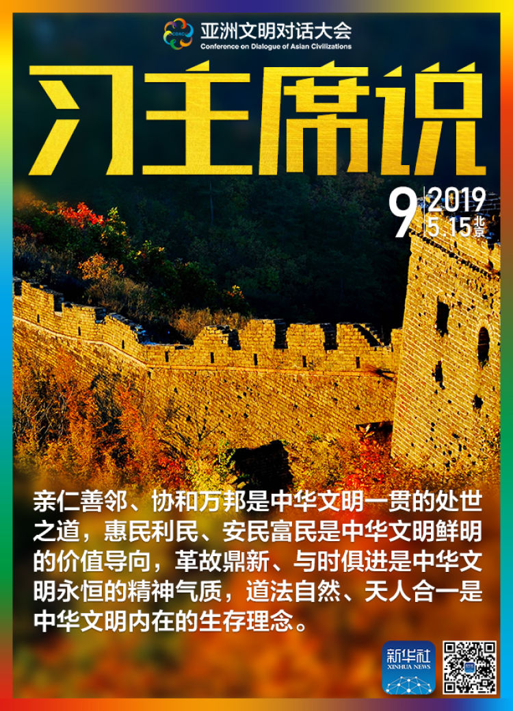 親仁善鄰、協(xié)和萬邦是中華文明一貫的處世之道,惠民利民、安民富民是中華文明鮮明的價(jià)值導(dǎo)向,革故鼎新、與時(shí)俱進(jìn)是中華文明永恒的精神氣質(zhì),道法自然、天人合一是中華文明內(nèi)在的生存理念。