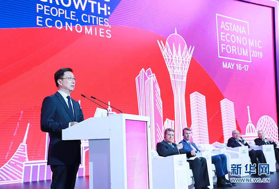 韓正在第十二屆阿斯塔納經(jīng)濟(jì)論壇上發(fā)表題為《共享機(jī)遇 共謀發(fā)展 共贏未來》的致辭表示,中國擁有世界上最雄厚的人力資源,在統(tǒng)籌城鄉(xiāng)發(fā)展、推進(jìn)新型城鎮(zhèn)化方面取得顯著進(jìn)展,經(jīng)濟(jì)發(fā)展前景廣闊,將始終是世界經(jīng)濟(jì)增長的穩(wěn)定動力源和各國拓展商機(jī)的活力大市場。韓正提出四點(diǎn)建議:一是加強(qiáng)開放合作,共同支持經(jīng)濟(jì)全球化和貿(mào)易投資自由化便利化,推動世界經(jīng)濟(jì)穩(wěn)定增長。二是加強(qiáng)可持續(xù)發(fā)展合作,攜手應(yīng)對氣候變化、海洋污染、生物保護(hù)等全球性環(huán)境問題,共同呵護(hù)地球家園和促進(jìn)人類共享發(fā)展成果。三是加強(qiáng)城鎮(zhèn)化合作,促進(jìn)城市可持續(xù)發(fā)展,共同提升城市在現(xiàn)代化建設(shè)中的引擎作用。四是加強(qiáng)創(chuàng)新和人才合作,激發(fā)人的創(chuàng)造力,挖掘人力資源潛力,共同培育經(jīng)濟(jì)高質(zhì)量發(fā)展的新動能。