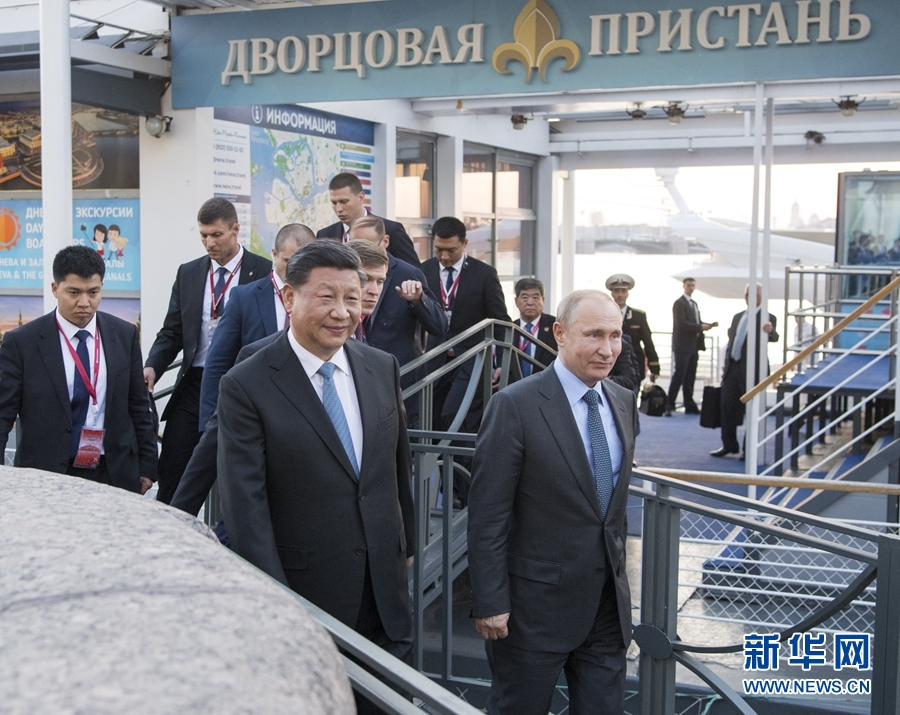 6月6日,國(guó)家主席習(xí)近平在圣彼得堡同俄羅斯總統(tǒng)普京再次舉行會(huì)晤。普京邀請(qǐng)習(xí)近平共同乘船游覽涅瓦河。新華社記者 李學(xué)仁 攝