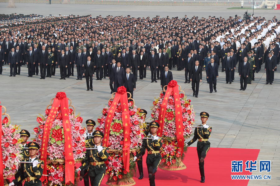 9月30日上午,習(xí)近平、李克強(qiáng)、栗戰(zhàn)書、汪洋、王滬寧、趙樂際、韓正、王岐山等黨和國(guó)家領(lǐng)導(dǎo)人來(lái)到北京天安門廣場(chǎng),出席烈士紀(jì)念日向人民英雄敬獻(xiàn)花籃儀式。 新華社記者 龐興雷 攝