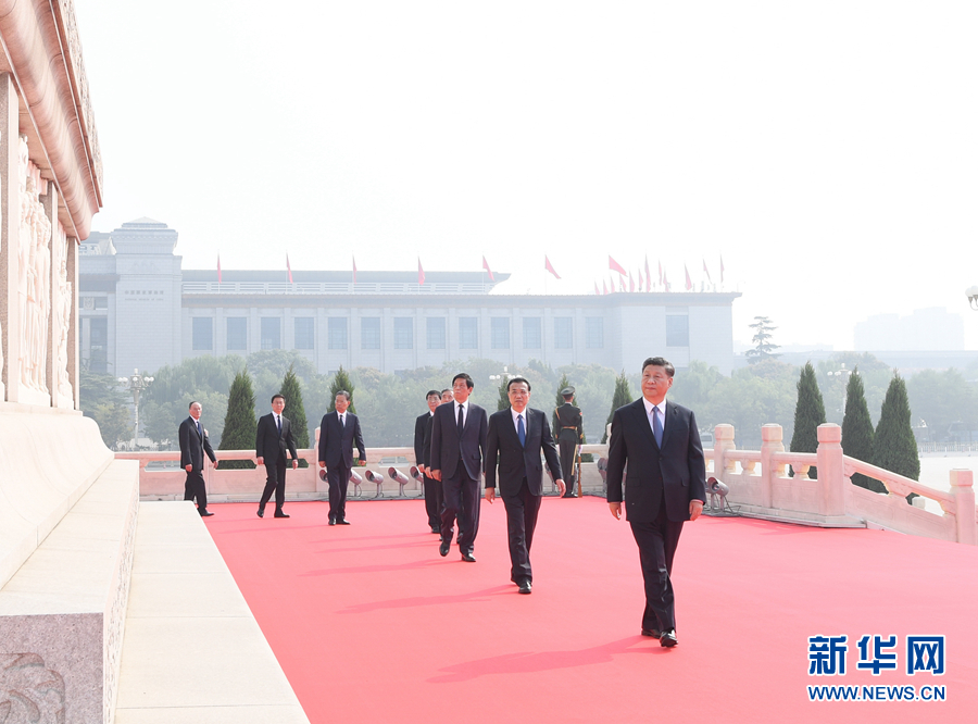 9月30日上午,習(xí)近平、李克強(qiáng)、栗戰(zhàn)書、汪洋、王滬寧、趙樂際、韓正、王岐山等黨和國(guó)家領(lǐng)導(dǎo)人來(lái)到北京天安門廣場(chǎng),出席烈士紀(jì)念日向人民英雄敬獻(xiàn)花籃儀式。儀式前,習(xí)近平等來(lái)到毛主席紀(jì)念堂瞻仰毛澤東同志遺容。新華社記者 鞠鵬 攝