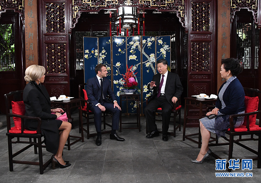 兩國(guó)元首夫婦在玉華堂落座。習(xí)近平和彭麗媛愉快地憶及今年3月訪問法國(guó)受到馬克龍夫婦熱情款待的情景。習(xí)近平說,歡迎馬克龍總統(tǒng)再次訪華并第一次來上海。上海是中國(guó)改革開放和發(fā)展進(jìn)步的縮影,體現(xiàn)了近代以來中國(guó)同世界關(guān)系的演變。希望這次訪問有助于你了解上海、了解中國(guó)。我和夫人選擇在豫園款待總統(tǒng)先生和夫人,希望你們能領(lǐng)略中華園林之美和中國(guó)的傳統(tǒng)文化。文化藝術(shù)表現(xiàn)形式不同,但帶給不同國(guó)家民眾的心靈體驗(yàn)是相通的,不同文化可以和諧共生。中法作為東西方兩大文明代表,應(yīng)該相互尊重,交流互鑒,各美其美,美美與共。