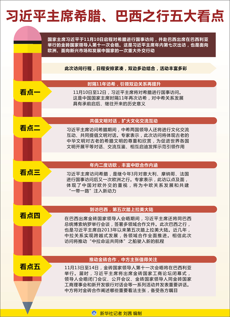 新華社北京11月9日電 題:習近平主席希臘、巴西之行五大看點