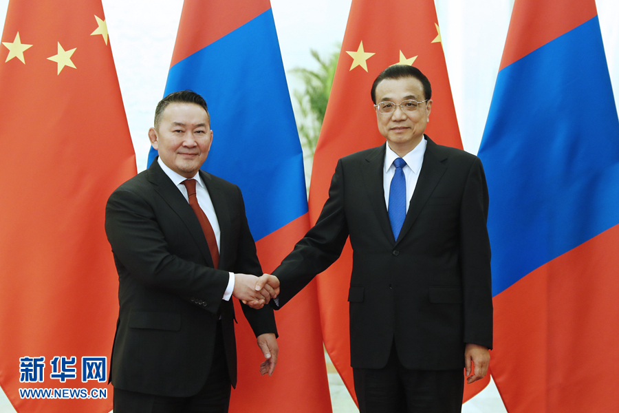 2月27日,國務(wù)院總理李克強在北京人民大會堂會見蒙古國總統(tǒng)巴特圖勒嘎。 新華社記者 劉彬 攝