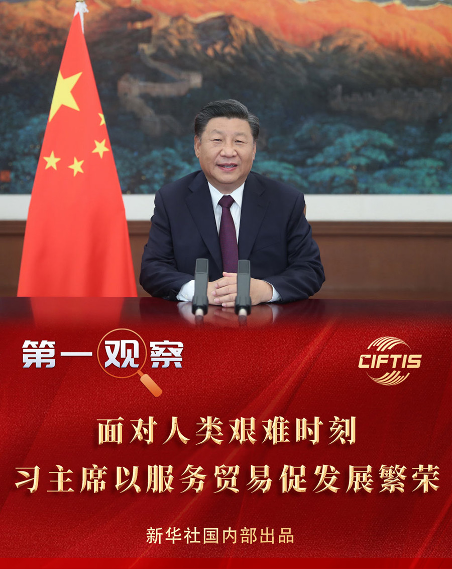 “希望以此為契機(jī),搭建起平臺(tái)和橋梁,讓各國(guó)人民充分展示服務(wù)貿(mào)易領(lǐng)域新發(fā)展新突破,共同享受人類(lèi)社會(huì)發(fā)展進(jìn)步新技術(shù)新成果?!绷?xí)近平主席在致辭中說(shuō)。