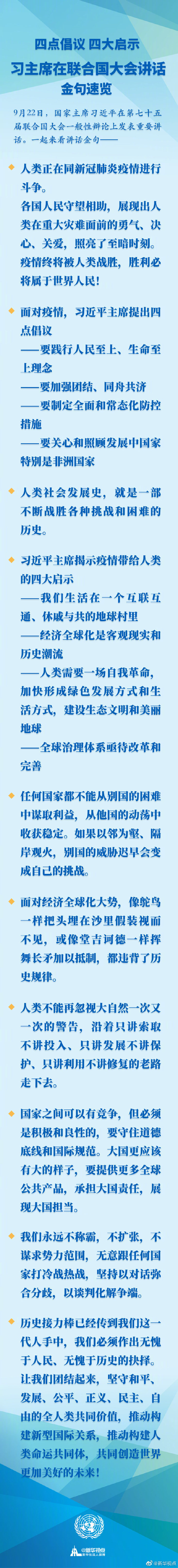 四點(diǎn)倡議 四大啟示 習(xí)主席在聯(lián)合國(guó)大會(huì)講話金句速覽