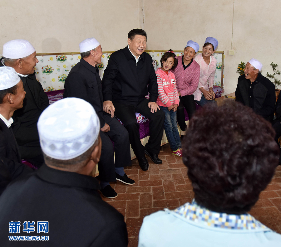 2016年7月18日下午,習(xí)近平在寧夏固原市涇源縣大灣鄉(xiāng)楊嶺村村民馬克俊家同一家人和村民代表親切交談。 新華社記者 李濤 攝