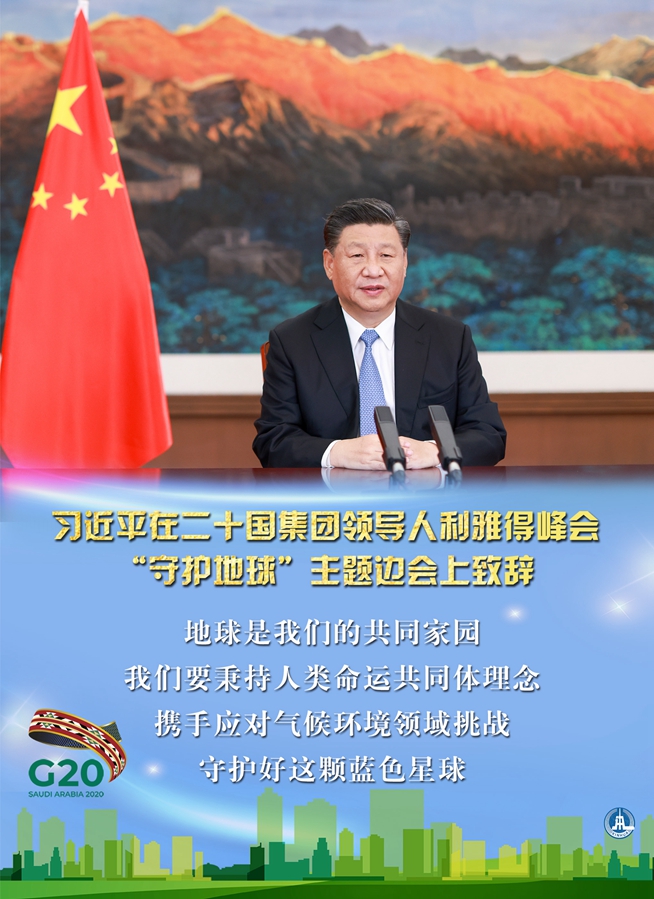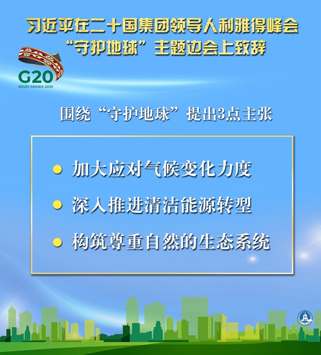海報(bào)|習(xí)近平在二十國(guó)集團(tuán)領(lǐng)導(dǎo)人利雅得峰會(huì)“守護(hù)地球”主題邊會(huì)上致辭