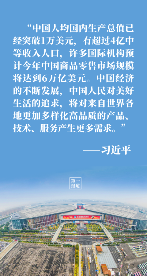 “中國(guó)的發(fā)展離不開(kāi)世界,世界的繁榮也需要中國(guó)?!闭劦街袊?guó)大市場(chǎng)蘊(yùn)藏的大機(jī)遇,習(xí)主席用事實(shí)和數(shù)據(jù)說(shuō)話(huà):