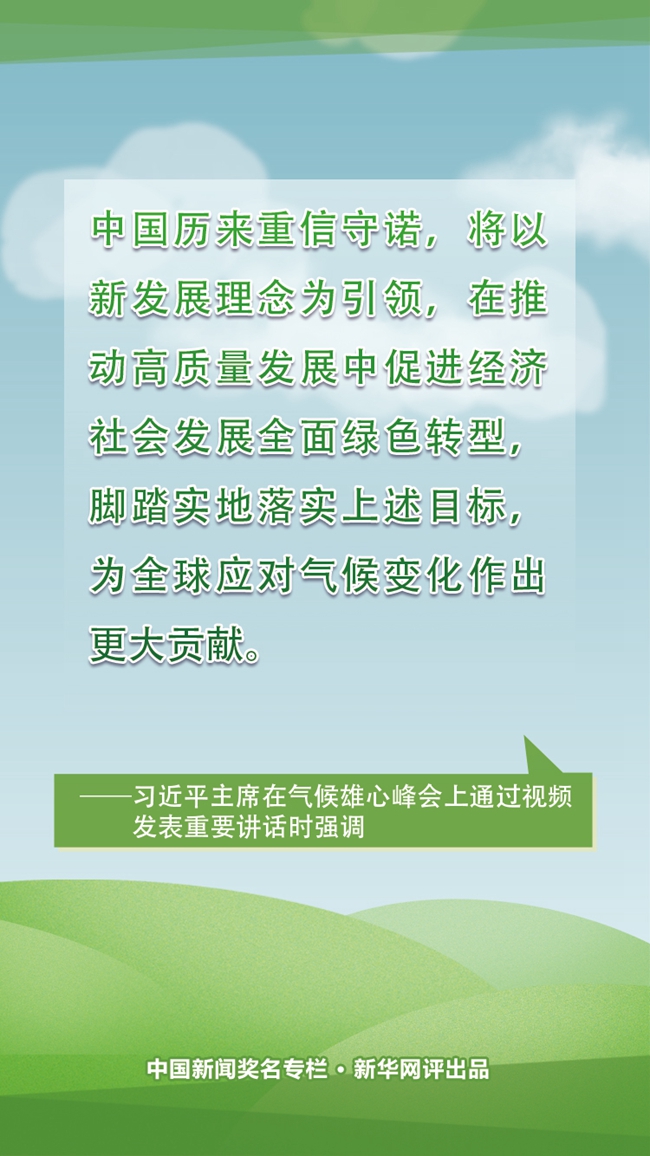 當前,中國正處于實現(xiàn)中華民族偉大復興的關(guān)鍵時期,發(fā)展經(jīng)濟、改善民生的任務十分繁重,但中國仍然以最大決心和最積極態(tài)度參與全球應對氣候變化共同行動。在提前完成2020年應對氣候變化相關(guān)目標的基礎上,中國宣布碳中和目標、提出大幅提升風電和太陽能發(fā)電量等國家自主貢獻新舉措,將以新發(fā)展理念為引領(lǐng),在推動高質(zhì)量發(fā)展中促進經(jīng)濟社會發(fā)展全面綠色轉(zhuǎn)型,腳踏實地落實今后十年新的減排目標,為全球應對氣候變化作出更大貢獻。中國不斷以實際行動向世界表明,中國始終是全球環(huán)境治理的積極參與者與貢獻者,為全球應對氣候變化樹立典范,為推動全球氣候治理注入信心和力量。