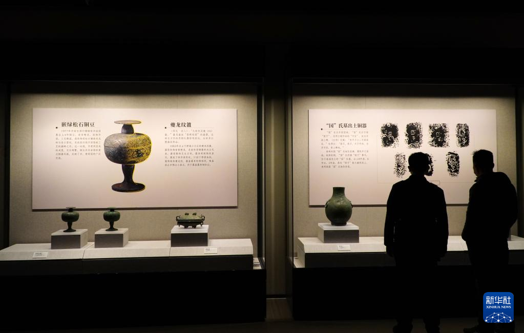 2月9日,在孔子博物馆举行的山东文物精品展上,参观者在观看山东博物馆收藏的战国青铜器。