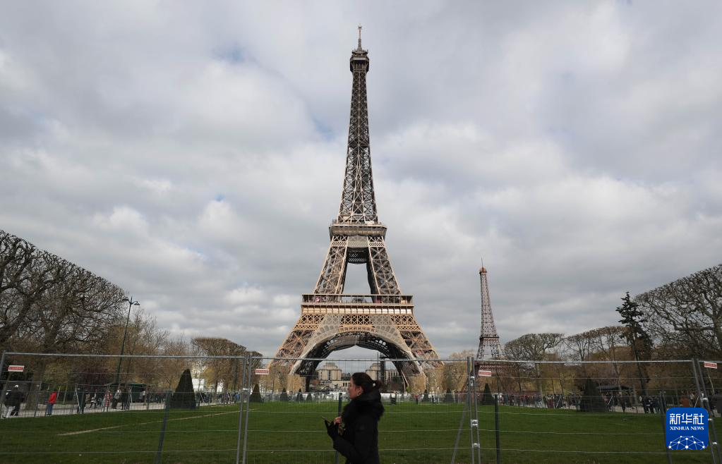 这是4月3日在法国巴黎拍摄的埃菲尔铁塔(右)和“小埃菲尔铁塔”。