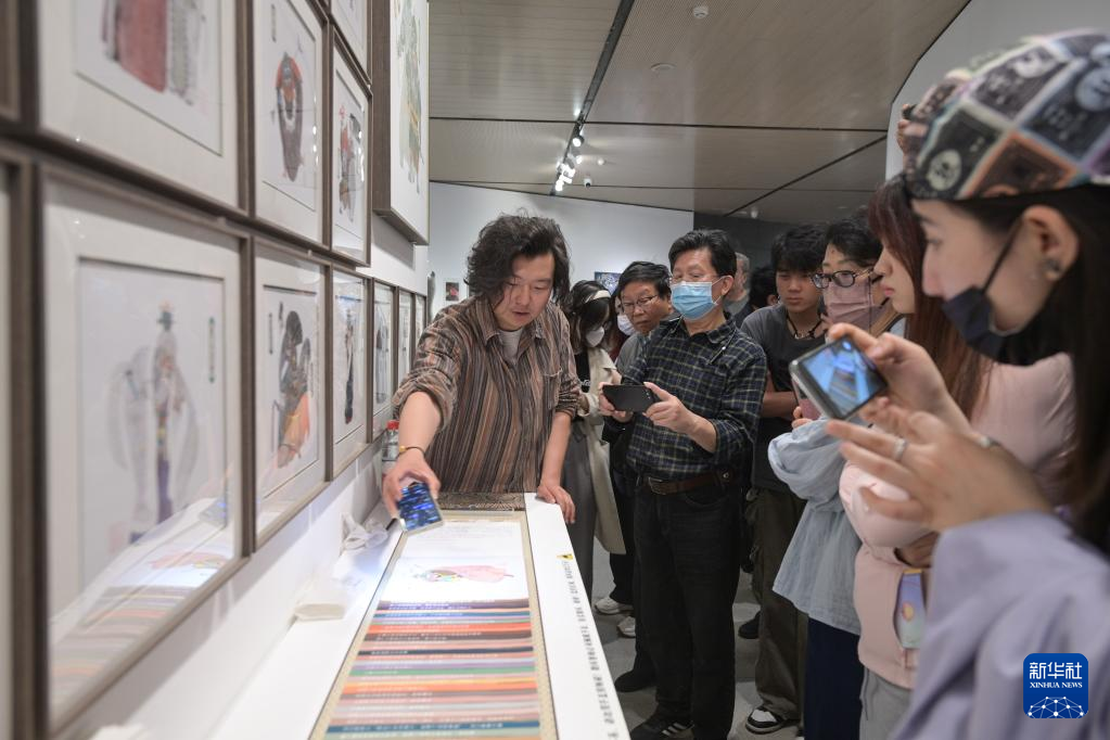 5月9日,作者申杰在展览现场向观众介绍自己的作品。