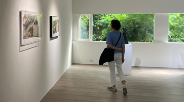 5月10日,参观者在博览会上欣赏漆画作品。