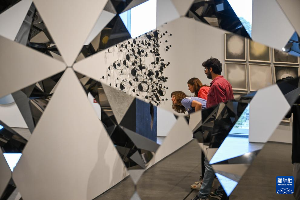 10月10日,参观者在土耳其伊斯坦布尔现代艺术博物馆内观看展品。
