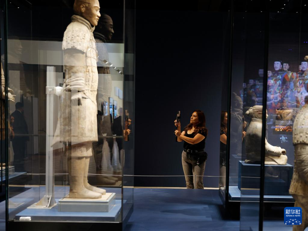 5月22日,嘉宾在美国加利福尼亚州奥兰治县宝尔博物馆欣赏兵马俑展品。
