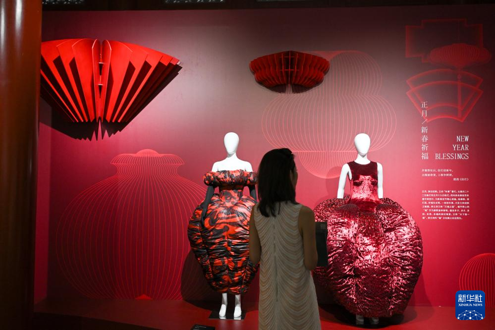 据了解,展览以“恭王府与十二风雅”为主题,将王府的四季美学、节气仪典与当代时尚相结合,展出近50件服装以及艺术、家居、手工艺等展品。