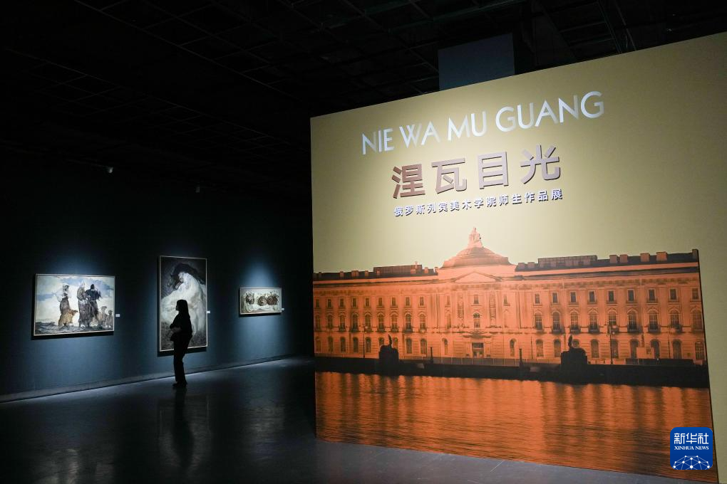 4月21日,观众在观看俄罗斯列宾美术学院师生作品。