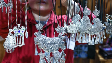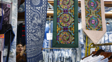 4月25日在外场展区拍摄的运用上海绒绣非遗技艺的文创产品。