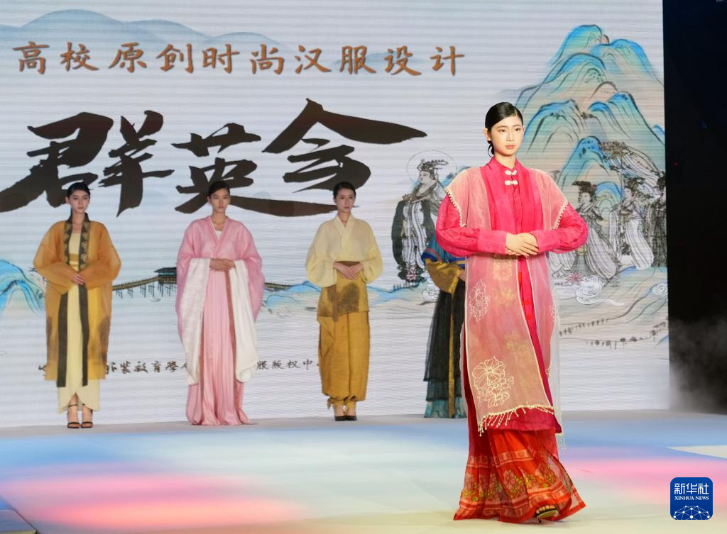 4月25日,在大会的华风时尚T台秀现场,模特展示汉服。