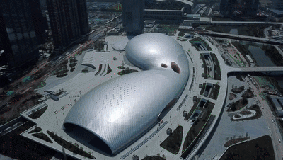 远看好似一朵绽放在钱塘江畔的“大莲花”