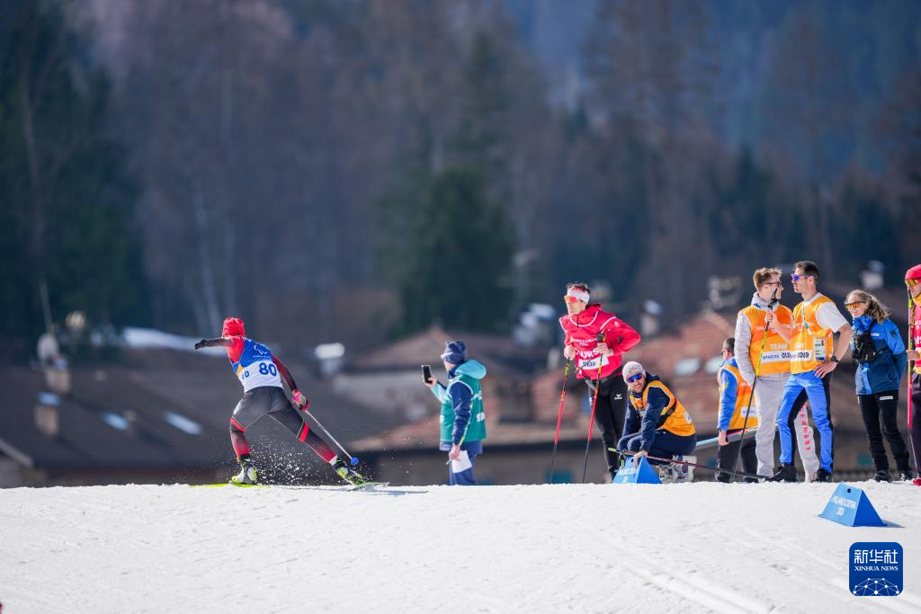当地时间3月13日,在意大利泰塞罗举行的米兰-科尔蒂纳冬残奥会冬季两项男子短距离追逐(站姿)比赛中,中国选手蔡佳云夺得冠军。
