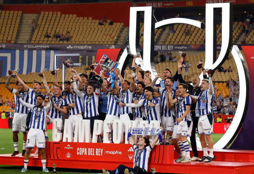4月18日,皇家社会庆祝获得国王杯冠军。新华社/路透