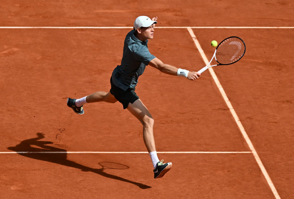 4月28日,辛纳在比赛中回球。新华社记者 程敏 摄