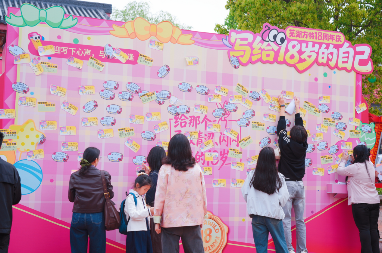除了丰厚奖品,精心设置的情感互动也为游客们留下了温暖记忆。4月18日至19日,芜湖方特在方特梦幻王国“公主坊”前与方特东方神画“迎宾轩”舞台旁特别设立“致18岁的自己”时光留言墙。游客领取定制时光卡片,提笔寄语,与18岁的自己展开跨越时空的对话,在方特留下独一无二的“成年礼”纪念。