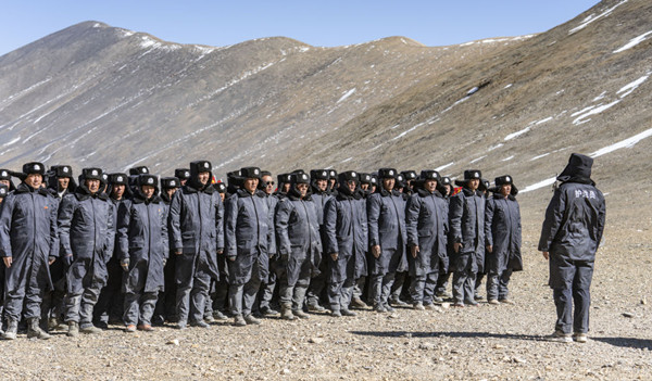 如今,原邊防武警部隊(duì)已轉(zhuǎn)為人民警察編制,巡邏隊(duì)員們配發(fā)了與“平安藍(lán)”相稱的隊(duì)服,隊(duì)伍中也多了不少年輕面孔。23歲的旦增石塔兩年前才入隊(duì)。在訓(xùn)練中,他按軍姿的要求站在隊(duì)伍末尾,手指尖繃得筆直。