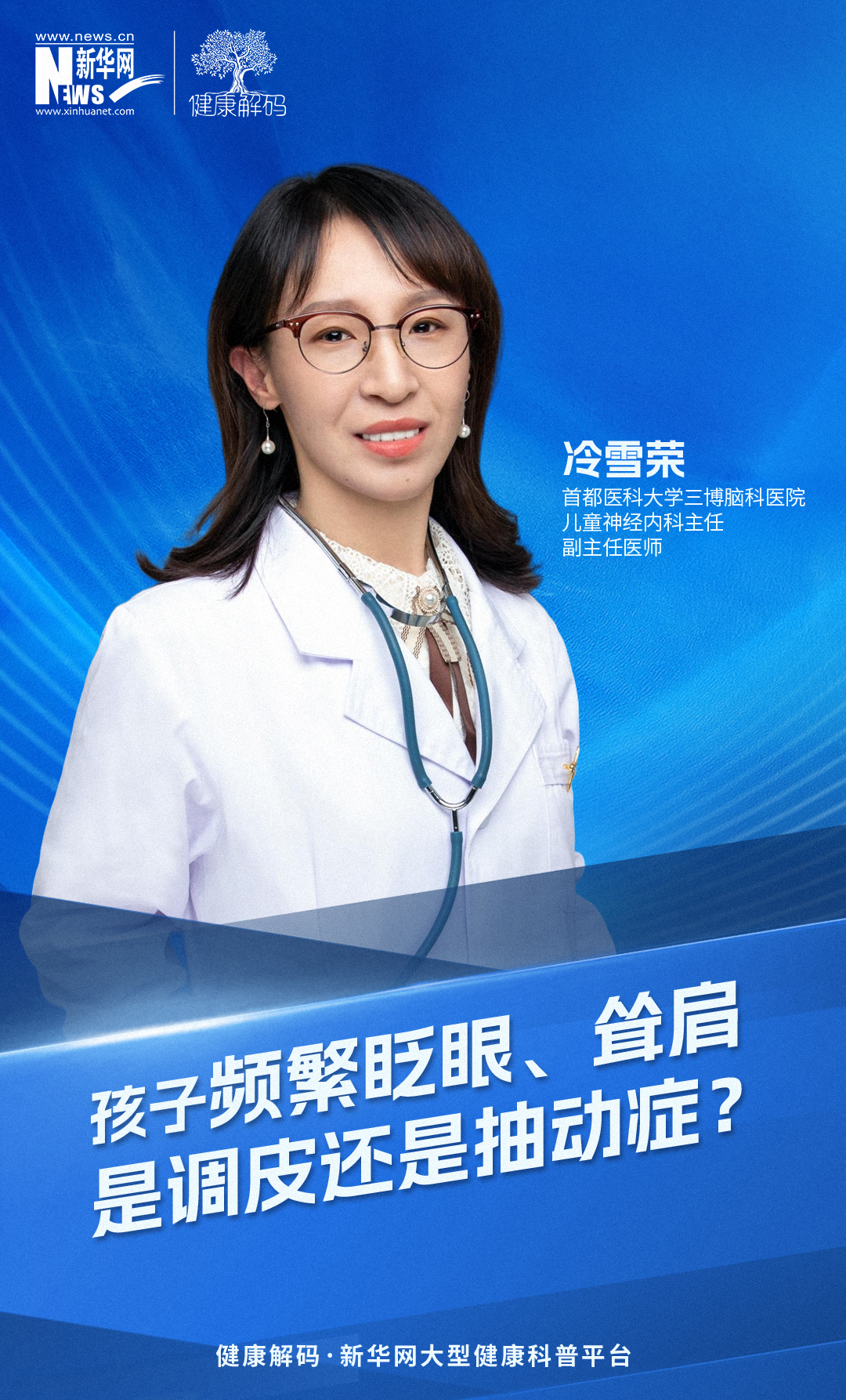 抽动症发病与哪些因素有关?如果家长怀疑孩子有抽动倾向,在家如何初步观察记录?需要关注哪些细节?本集节目邀请了首都医科大学三博脑科医院儿童神经内科副主任医师、副教授、硕士生导师冷雪荣分享《孩子频繁眨眼、耸肩,是调皮还是抽动症》。