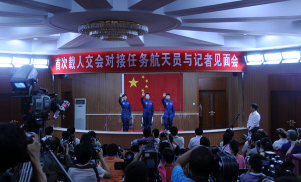 航天員景海鵬、劉旺、劉洋與記者見面會