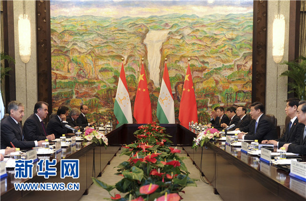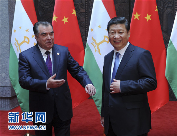 ????習(xí)近平表示,中方始終視塔吉克斯坦為好鄰居、好朋友、好伙伴,支持塔吉克斯坦維護(hù)國家穩(wěn)定、促進(jìn)經(jīng)濟(jì)發(fā)展、提高人民生活水平。去年中塔建立戰(zhàn)略伙伴關(guān)系以來,兩國關(guān)系發(fā)展進(jìn)入新階段,各領(lǐng)域合作勢頭很好。雙方要加緊制定《中塔2015-2020年戰(zhàn)略伙伴關(guān)系合作綱要》,如期推進(jìn)中國-中亞天然氣管道工程以及塔方輸變電線路改造、交通和邊境口岸基礎(chǔ)設(shè)施建設(shè)、工業(yè)園、農(nóng)業(yè)技術(shù)示范園區(qū)等合作項(xiàng)目,促進(jìn)文化、教育、旅游合作,加強(qiáng)執(zhí)法安全和防務(wù)合作,共同打擊“三股勢力”、販毒和跨國犯罪。中方全力支持和配合塔方辦好今年9月舉行的上海合作組織杜尚別峰會(huì),推動(dòng)本組織向團(tuán)結(jié)更緊密、合作更務(wù)實(shí)、行動(dòng)更有效的方向發(fā)展。